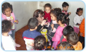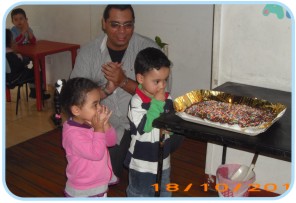 "Agradecemos a representante Márcia Maria, da empresa Frankia Virtual, por passar esses momentos em nossa creche, beneficiando as crianças com a doação de refrigerantes e um bolo".