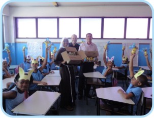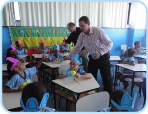 Foi feita a doação de material escolar (lápis, borracha) e aproveitamos a época da Páscoa para doar também ovos de páscoa para mais de 200 crianças da Creche Casa Belém, em Amaralina Salvador/BA. Também demos uma caixa de bombons para cada funcionário.
