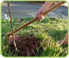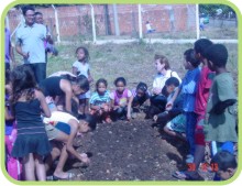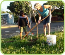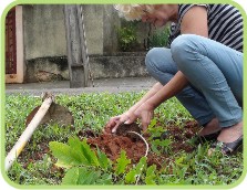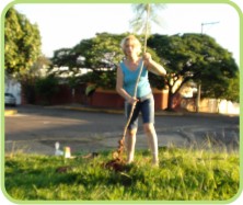 As pessoas que aparecem nas fotos realizando o plantio são minha mãe e também uma senhora que mora na rua José Bortoleto. Ela auxiliou trazendo o balde com água. ”