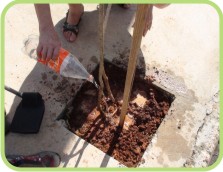 O plantio da árvore foi feito por mim e pela minha irmã Michele, com a colaboração voluntário da minha mãe Nailza. Estiveram presentes ainda a professora Ricardina e a diretora da escola, Íris.”